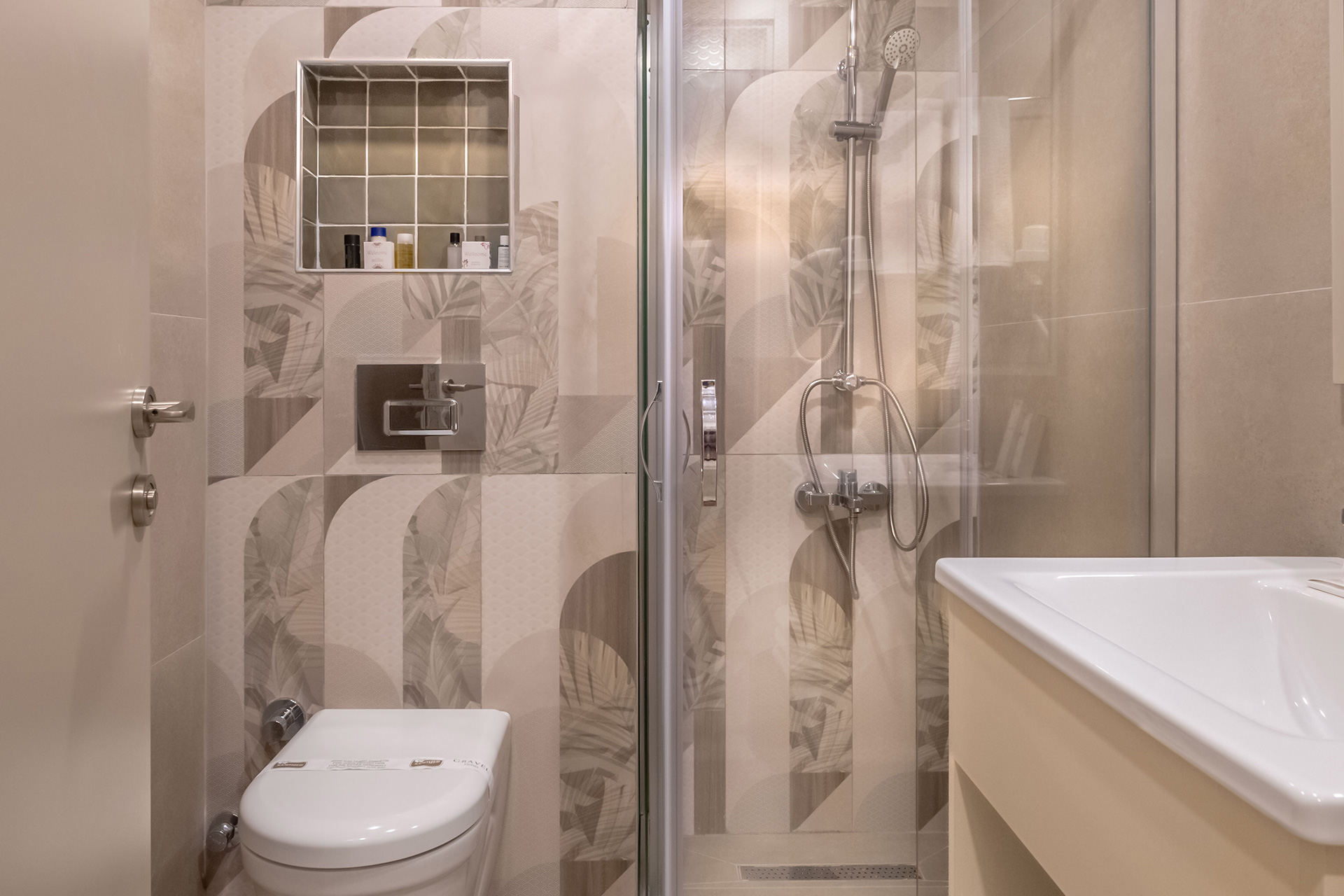 Modern ve işlevsel tasarıma sahip duş alanı, günün yorgunluğunu atmanıza yardımcı olurken klima, her mevsim ideal oda sıcaklığını korur. Balkon, açık hava hissini odaya taşırken balkon camı sayesinde sessiz ve dengeli bir ortam sunar. Wi-Fi ve internet erişimi, bağlantıda kalmak isteyen misafirlerimiz için kesintisiz bir kullanım imkânı sunar. Kapsül kahve içeren kahve seti sayesinde günün her anında küçük ama ayrıcalıklı molalarla konaklama deneyiminiz tamamlanır.